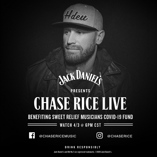 Chase Rice and Jack Daniel’s have a long history of collaborating to create meaningful moments and memories and that tradition continues this Friday as they come together to host a “Friday Night Happy Hour.” Rice is set to perform songs from his home to benefit Sweet Relief Musicians Fund’s COVID-19 Fund.