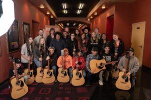 PLATINUM selling #1 hit singer-songwriter Chayce Beckham returned to his hometown of Apple Valley, California yesterday, December 12, to visit the town’s local parks and recreation afterschool program at the Singh Center for The Arts. Partnering with Gibson Gives and Free Guitars 4 Kids (FG4K), Beckham personally surprised 30 kids with brand-new guitars.